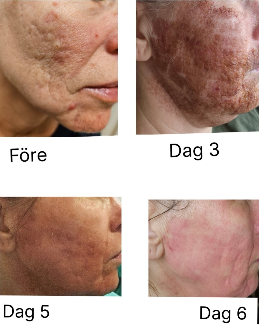 Undvik att sola dig 3-4 veckor före och efter behandlingen. pga av större risk för pigmentfläckar.