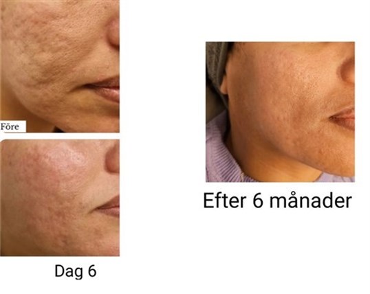 Resultatet syns och känns snabbt och fortsätter successivt att förbättra huden. Full effekt ser man först efter 3-6 månader, i en del fall upp till 1 år.